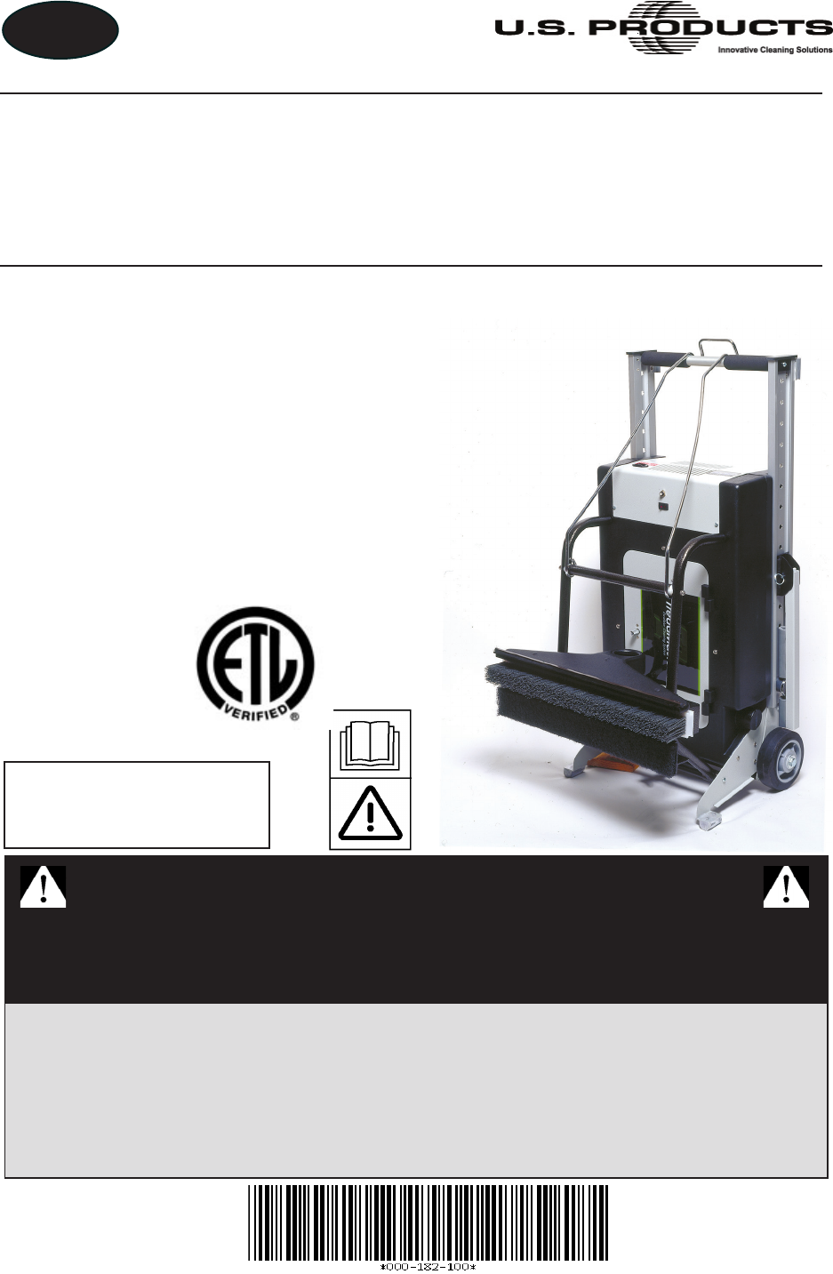 EN TREADMASTER™ ESCALATOR CLEANER INFORMATION AND OPERATING INSTRUCTIONS Models 100-100-001 Models 100-100-221 100-100-002 100-100-222 100-100-003 100-100-223 100-100-004 100-100-005 SAVE THESE INSTRUCTIONS IMPORTANT SAFETY INSTRUCTIONS When using an electrical appliance, basic precautions should always be followed, including the following: READ ALL INSTRUCTIONS BEFORE USING THE TREADMASTER U.S. Products 11015 47th Avenue West, Mukilteo, Washington 98275 MAN-44183 Rev.