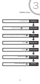Delete User Activate Lock Press and hold for 3 sec Press admin finger or enter admin PIN code Press 2 Press Enter user ID Enter user ID again -8- 3 Welcome Admin code Menu Delete user Enter user ID Enter again Success