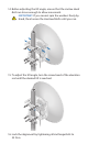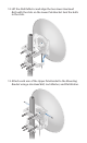 12. Lift the Dish Reflector and align the two lower Hex Head Bolts with the slots on the Lower Pole Bracket. Seat the bolts in the slots. 13. Attach each arm of the Upper Pole Bracket to the Mounting Bracket using a Hex Head Bolt, Lock Washer, and Flat Washer.