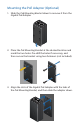 Mounting the PoE Adapter (Optional) 1. Slide the PoE Mounting Bracket down to remove it from the Gigabit PoE Adapter. 2. Place the PoE Mounting Bracket at the desired location and mark the two holes. Pre-drill the holes if necessary, and then secure the bracket using two fasteners (not included). 3. Align the slots of the Gigabit PoE Adapter with the tabs of the PoE Mounting Bracket, and then slide the adapter down.