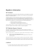 Regulatory Information FCC Statement This equipment has been tested and found to comply with the limits for a Class B digital device, pursuant to Part 15 of the FCC Rules. These limits are designed to provide reasonable protection against harmful inteference in a residential installation. The equipment generates, uses and can radiate radio frequency energy and, if not installed and used in accordance with the instructions, may cause harmful interference to radio communications.