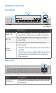 Hardware Overview Front Panel RJ45 1-8 SFP 1-2 Reset Button Port Description RJ45 1-8 RJ45 ports support 10/100/1000 Ethernet connections and Power over Ethernet (PoE). SFP 1-2 Hot-swappable SFP ports support 1 Gbps connections. This button serves two functions for the UniFi Switch: Reset Button • Restart Press and release the Reset button quickly. • Restore to Factory Default Settings Press and hold the Reset button for more than five seconds.