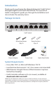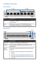 Hardware Overview Front Panel Ports 1-4 Ports 5-8 Port Description 1-4 RJ45 ports support 10/100/1000 Ethernet connections. 5-8 RJ45 ports support 10/100/1000 Ethernet connections and auto-sensing 802.3af PoE. Back Panel Ground Power Reset Button Port Description Ground Optional ancillary grounding point. Power Connect the included Power Adapter to the Power port. Reset Button This button serves two functions for the UniFi Switch: • Restart Press and release the Reset button quickly.