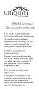 WSM5 Important Operation Information FCC Part 15.247 (b)(4) (iii) – Professional Install Statement The professional installer is responsible for ensuring that the system is used exclusively for fixed, point-to-point operations. Installer Compliance Responsibility Devices must be professionally installed. Ubiquiti Networks does not allow operation outside of the approved 5745-5850 MHz frequency range.