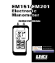 EM151/EM201 Electronic Manometer INSTRUCTION MANUAL - + PSI EM201 99 Washington Street Melrose, MA 02176 Phone 781-665-1400 Toll Free 1-800-517-8431 Visit us at www.TestEquipmentDepot.
