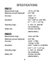 EM151 SPECIFICATIONS Measurement range: Minimum pressure displayed: Accuracy: Resolution: Operating range: Battery life: -20” to +20” WG 0.01” WG ±0.02” < 2” ±1%rdg > 2” 0.01” -9.99” to +9.99” WG 0.1” < -10”, > +10” wg 0 - 40˚C, 10 - 90% RH non condensing 50 hours min with alkaline battery Measurement range: Minimum pressure displayed: Accuracy: Resolution: Operating range: Battery life: -60 to +60” WG 0.01” WG ±0.