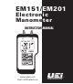 EM151/EM201 Electronic Manometer INSTRUCTION MANUAL - + PSI EM201 www.ueitest.com Email: info@ueitest.