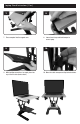 Laptop Stand Instructions (Con.) 7. 7. Place computer into the support arms. 9. 9. While holding second tier at an angle, place into any of the five slots (front or back). 8. 8. Loosen front clamp and front bumper to secure laptop. 10. 10. Move the cable management clips to desired slots.