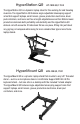 HyperStation QR Instructions 1. 1. Loosen both knobs 3. 3. Tighten base knob. 5. 5. Loosen small arm knobs and adjust the arms to desired length. 2. 2. While holding base, move stand into an upright position. 4. 4. Swing arms around to the front and tighten upper knob when arms are in the desired angle. 6. 6. Adjust back bumper to desired angle. Angle will control the amount the screen tilts back.