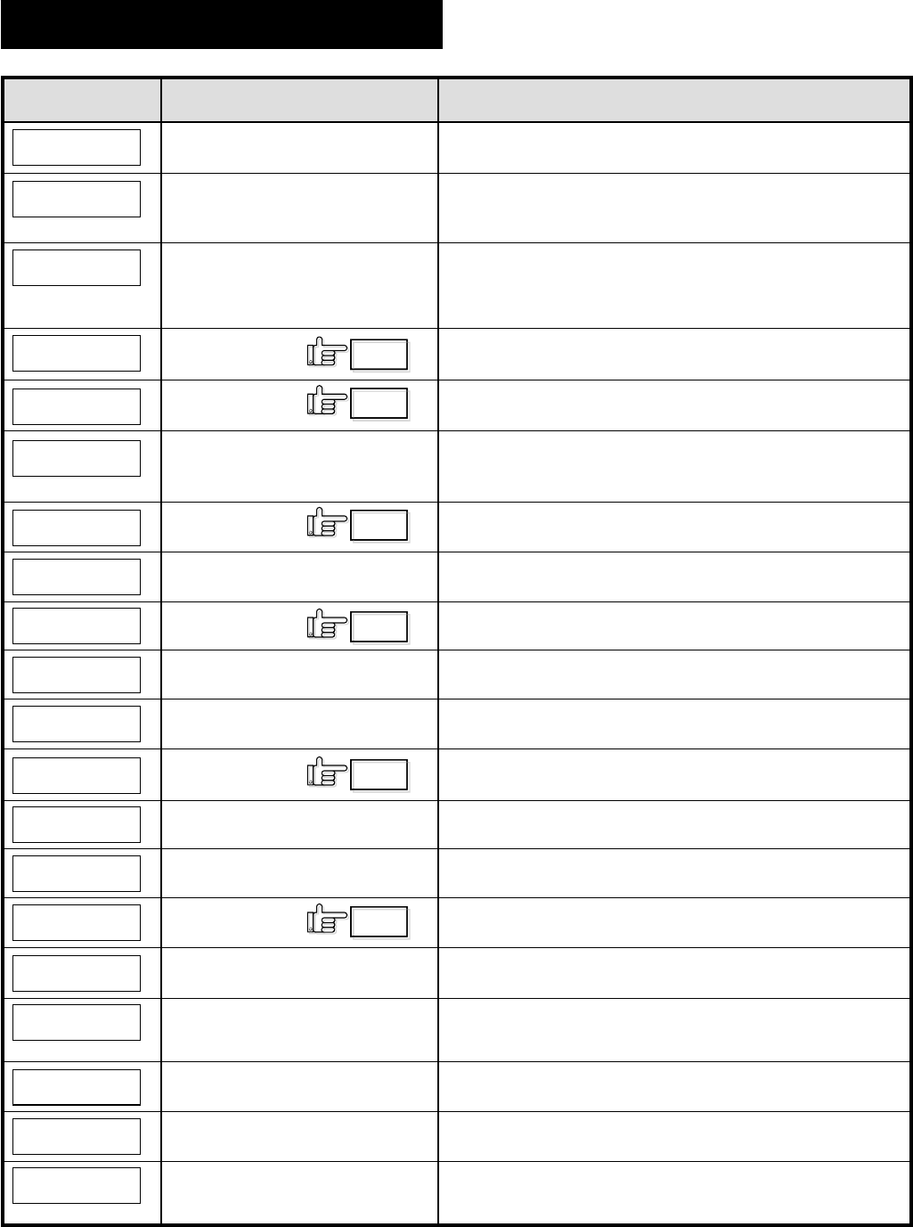The meaning of “reset → enter buttons” in the list is,