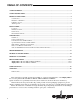 TABLE OF CONTENTS SAFETY WARNINGS.....................................................................................................................................................3 SAFETY INSTRUCTIONS ............................................................................................................................................3 PRODUCT APPLICATION ...........................................................................................................................................