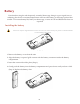 Battery Note that browsing the web frequently, extended data usage, being in a poor signal area, or subjecting the device to extreme temperatures will cause the battery to discharge quicker than normal. To increase battery life, limit your data usage, or turn off GPS and Bluetooth when not required. Installing the battery Please use only the original batteries and accessories you received with your phone or Ultimate Mobile recommended replacements. (Step 1) 1. Remove the battery cover from the unit. 2.