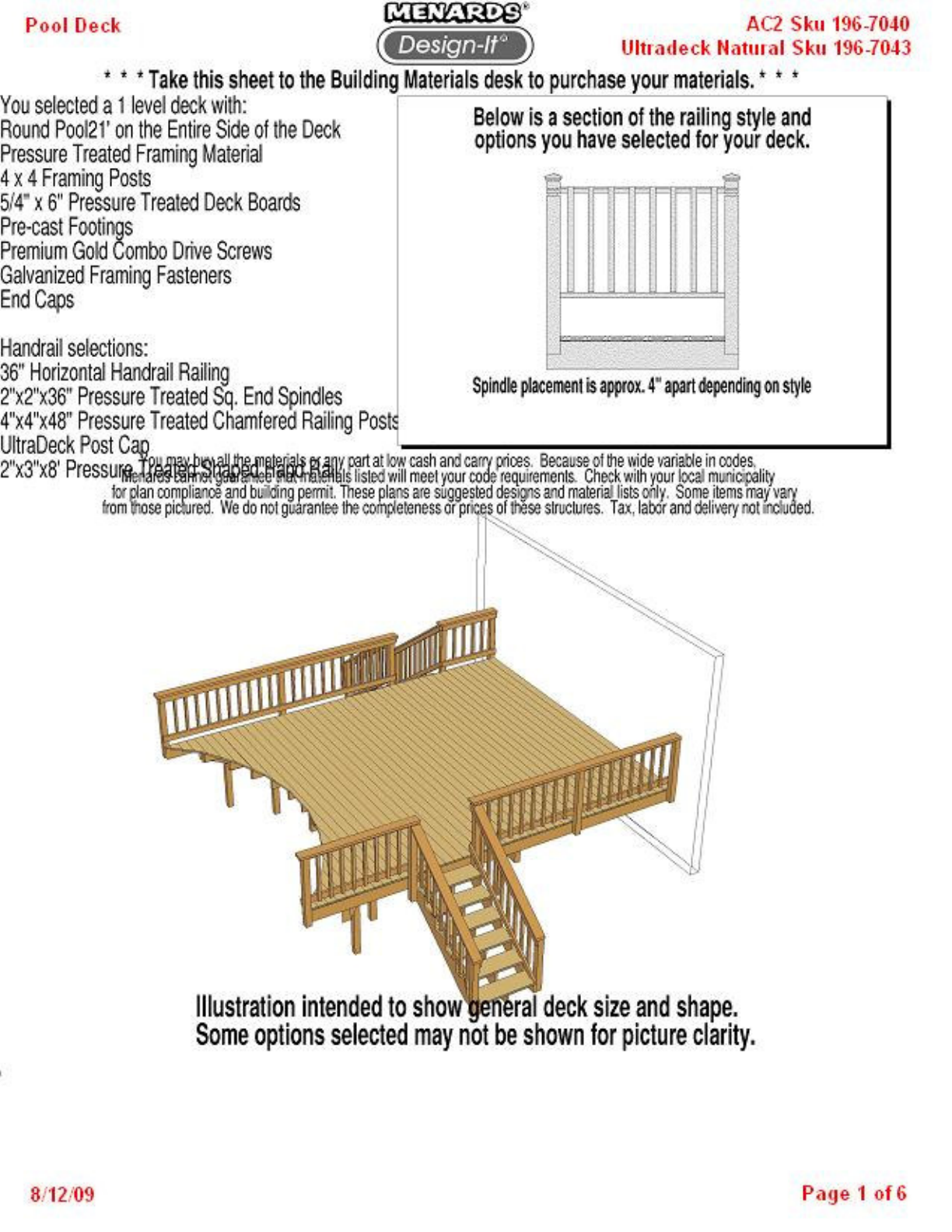16' x 20' Attached Pool Deck with Two Stairs Material List