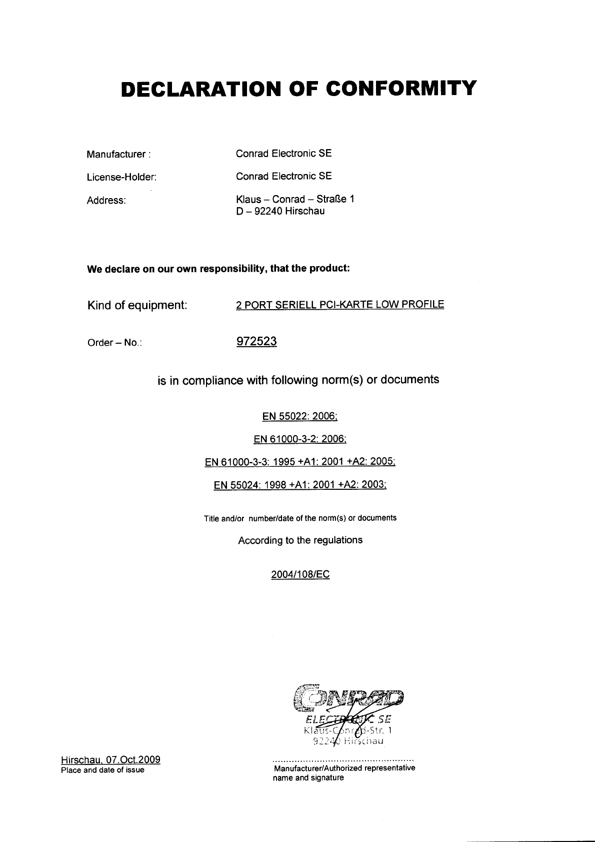 Declaration of conformity