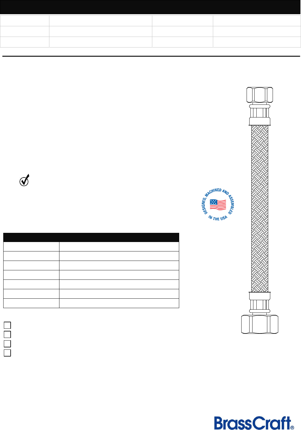 400.100 B1/ B2/ B3 SPP Braided Faucet Connector - Compression Inlet REV 07/13 2013 BrassCraft Mfg.