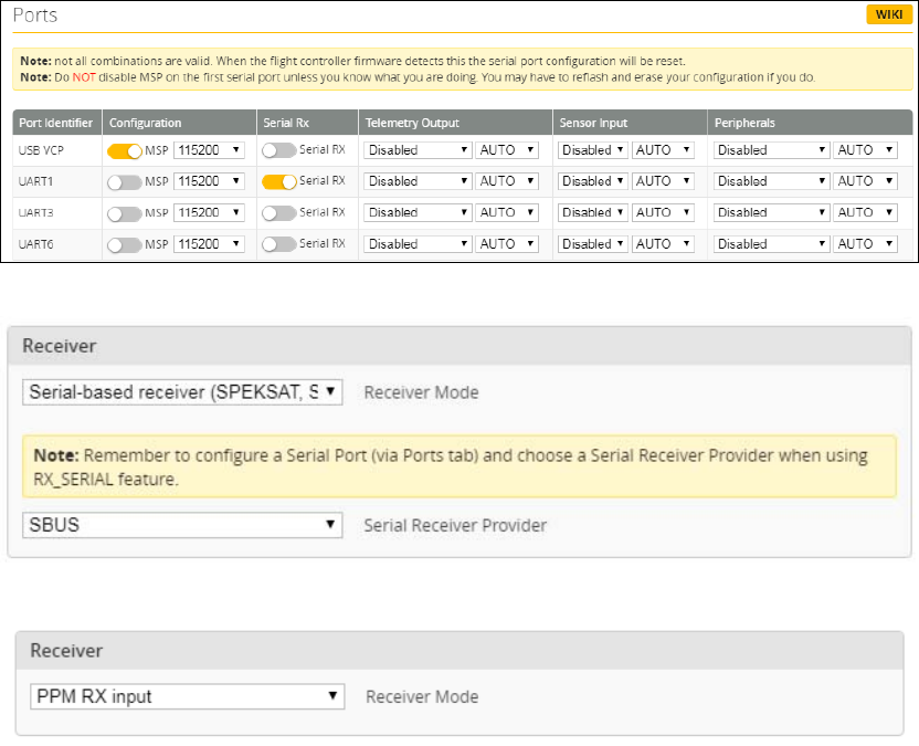 1. Sbus receiver / Ibus receiver / DSM2 receiver / DSMX receiver please enable Serial RX for