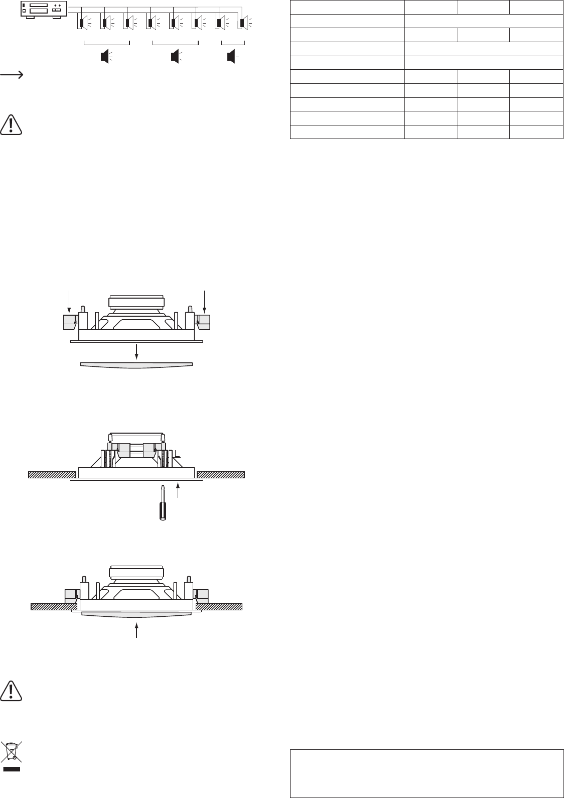 • Plaats de luidspreker in de inbouwopening en draai de drie bevestigingsschroeven in het