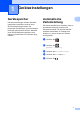 Kapitel 1 Display 1 Helligkeit der Hintergrundbeleuchtung einstellen Sie können die Helligkeit der TouchscreenDisplayhintergrundbeleuchtung anpassen. Wenn Sie die Anzeigen im Touchscreen nicht gut lesen können, sollten Sie es mit einer anderen Helligkeitseinstellung versuchen. a Drücken Sie b c Drücken Sie Alle Einstell.. d e f g h i 4 . Streichen Sie nach oben oder unten oder drücken Sie a oder b, um Geräteeinstell anzuzeigen. Drücken Sie Geräteeinstell.