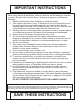 IMPORTANT INSTRUCTIONS When using electrical appliances, basic precautions should always be followed to reduce the risk of fire, electric shock, and injury to persons, including the following: 1. Read all instructions before installing or using this heater. 2. This heater is hot when in use. To avoid burns, do not let bare skin touch hot surfaces. Keep combustible materials, such as furniture, pillows, bedding, papers, clothes, and curtains at least 3 feet (0.