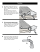 Operation 6 Now simply slide the blower across the gutter as shown to blow out the leaves. Stand with the pole at varying angles for best results. Individual conditions will vary when using this blower. Some practice and experimentation will be necessary to find the most effective position for the type of house and gutter design. 7 The fins along the Nozzle move freely to allow you to rotate the Nozzle position. Simply use the gutter to rotate the Nozzle to the desired position.