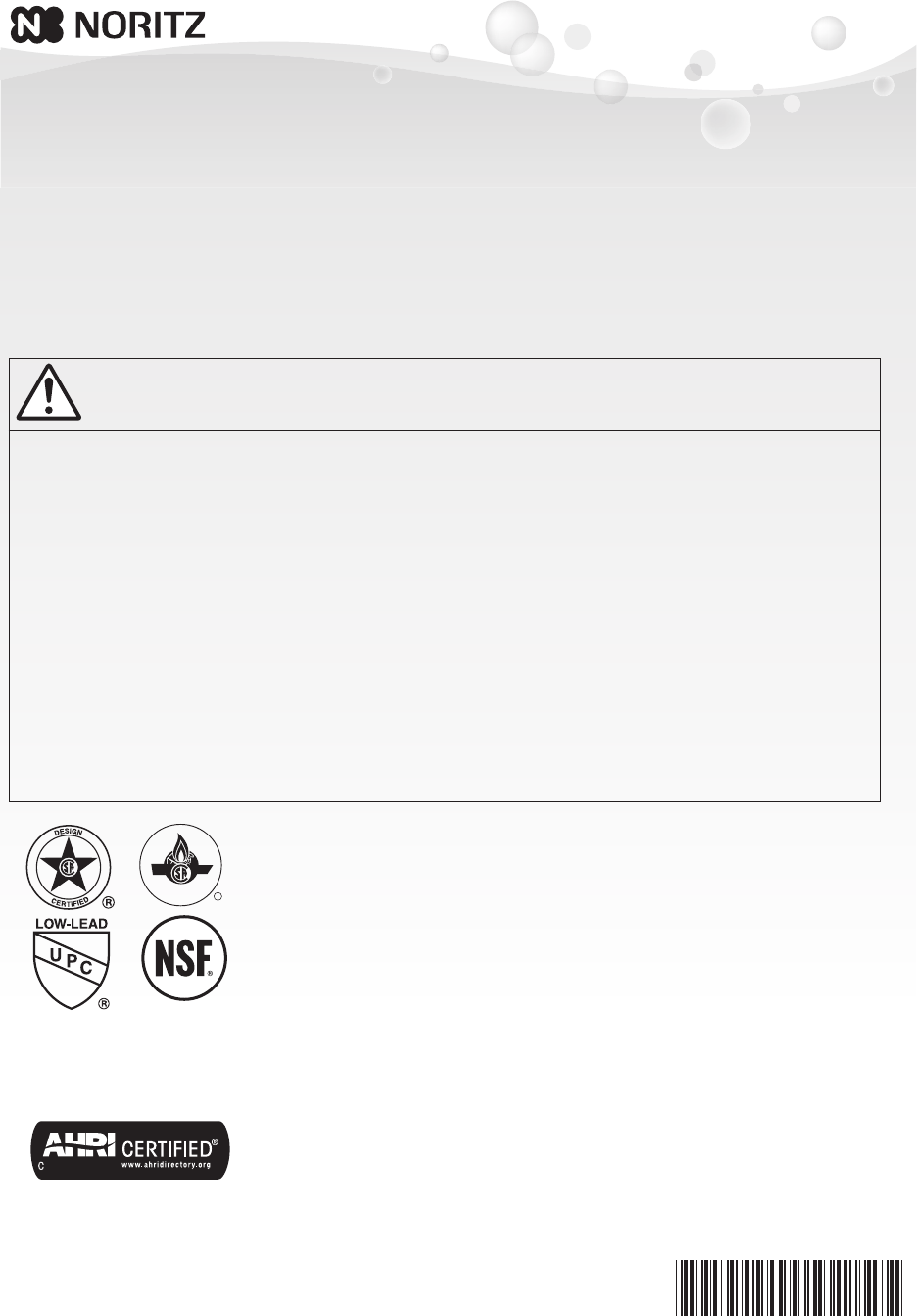 (Continued) Do not touch the power cord with wet hands. Don’t touch with a wet hand. Be sure to do. Don’t disassemble the equipment. Electric Shock. Consult the nearest Noritz agent if the water heater location needs to be changed. Contact a qualified service technician for any necessary repairs, service or maintenance. Contact Noritz before using with a solar pre-heater. Be sure to do.