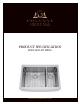 Product INFORMATION PRODUCT DESCRIPTION PRODUCT DIMENSIONS • • • • • • • • • • • • • • • • • • • • • • /8” [R3 50.8mm [2”] m 0m R1 228.6mm [9”] Overall Length: 35.875” Overall Width: 22” Overall Height: 10” Left Inner Bowl: L22” x W17.25” x H9” Right Inner Bowl: L10” x W17.25” x H9” Left Bottom Grid: L22” x W17.25” Right Bottom Grid: L10” x W17.25” Strainer: W4.5” x H3.9” Strainer Hole: 3.5” Sink Thickness: 1.
