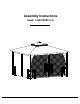 Care and Cleaning Before using, clean the product completely with a soft, dry towel. When not in use, wipe free of any dirt or loose objects, wash with a mild solution of soap and water; rinse thoroughly and dry completely. •Do not use strong detergent or abrasive cleaners. •Do not machine wash. •Bolts can loosen over time. Be sure to check bolts occasionally, tightening as needed. •This gazebo is not a permanent structure and should be disassembled & stored away after use.