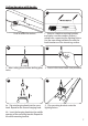 Ceiling hanging with hooks: 1 Final installed illustration 2 1. Select a suitable mounting location, and make sure the wooden surface is suitable for supporting the lighting fixture. Use the measuring template to mark the hook locations on the mounting surface. 3 2. Wear safety glasses before drilling pilot holes. 4 3. Screw in the screw hooks (not provided). 5 a b 4a. Slip wire hanging hook into the screw hook. Repeat for the second hanging hook. 5.