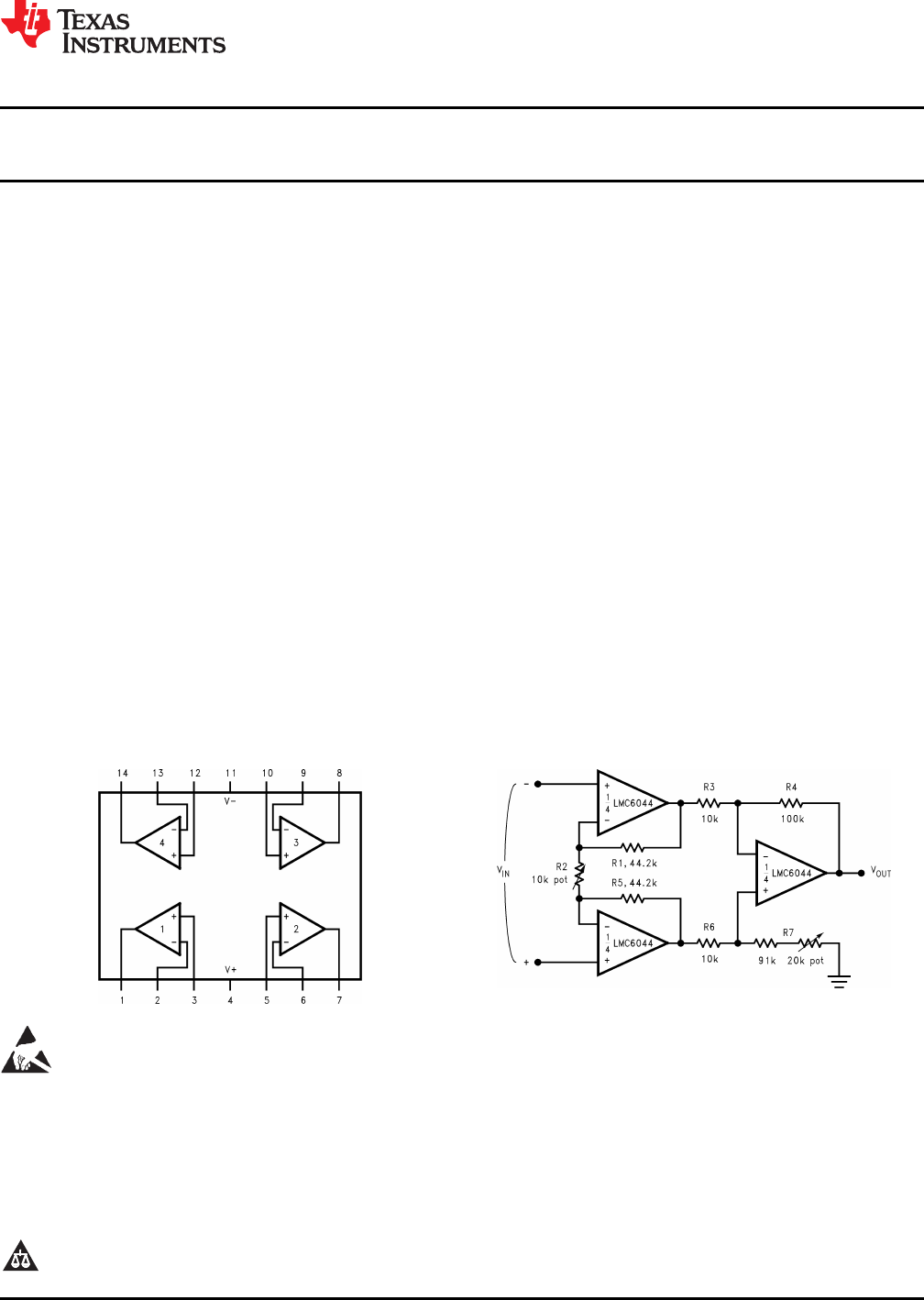 Other applications for the LMC6044 include bar code reader amplifiers, magnetic and electric field detectors, and