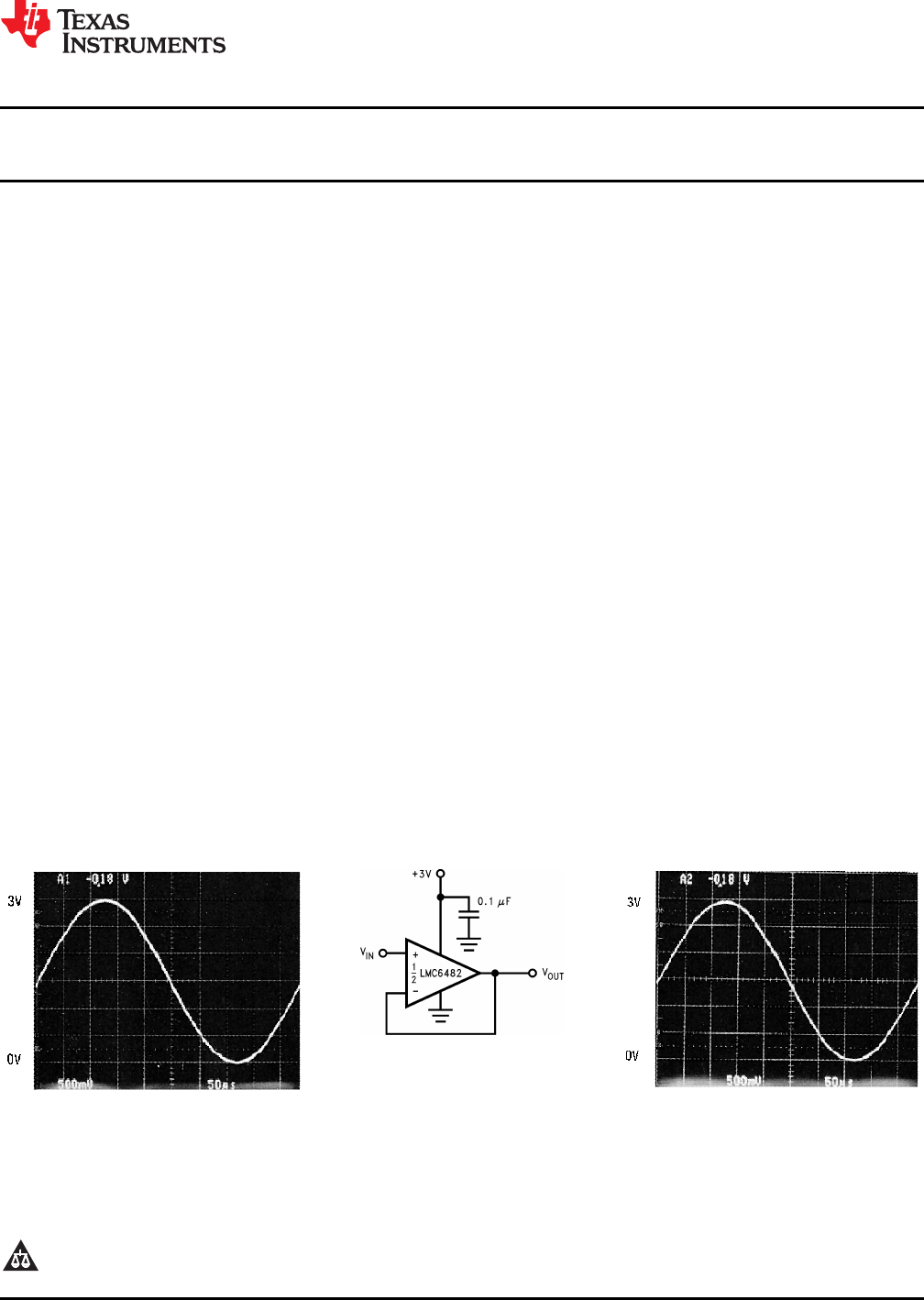 Maximum dynamic signal range is assured in low voltage and single supply systems by the LMC6482's rail-to-rail