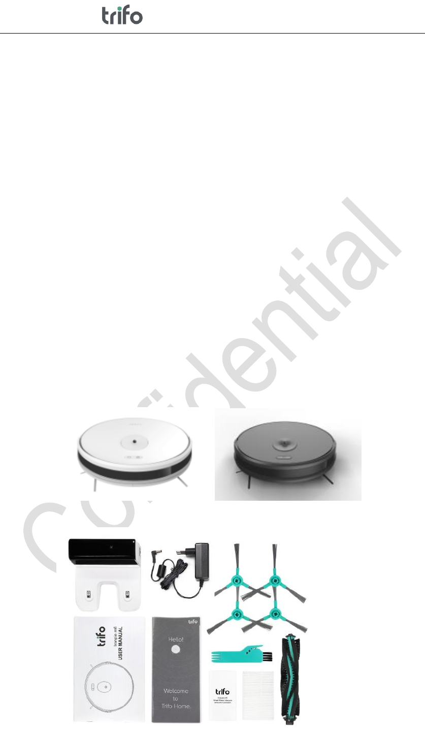 IRONPIE SHIPMENT 3.1 Adaptor Optional for U.S, EU and UK adaptors, please decide with order. EU Adaptor U.S Adaptor UK Adaptor 4. DISCRIPTION, robot vacuum cleaner 5. SHIPPING MARK, trifo ironpie 6. HS Code, 8509809090 7. MASTER CARTON 7.1 Q'TY (PCS.) 4 per Carton 7.2 SIZE 580X490X420MM ( 22.83”X19.29”X16.53”) 7.3 GROSS WEIGHT 26.9KG 7.4 PHOTO 8. COVER BOX 8.1 Q'TY (PCS.