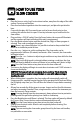 PARTS IDENTIFICATION BEFORE FIRST USE Before using the slow cooker for the first time remove all labels and tags from the product. Wash the ceramic pot and glass lid in hot soapy water with a sponge or a dish cloth, rinse thoroughly and dry. IMPORTANT: DO NOT IMMERSE THE SLOW COOKER BASE IN WATER. PLEASE NOTE: The initial 15 minutes of use may result in minimal smell and smoke. This is normal and harmless and comes from the protective substance applied to the heating elements during manufacturing. www.