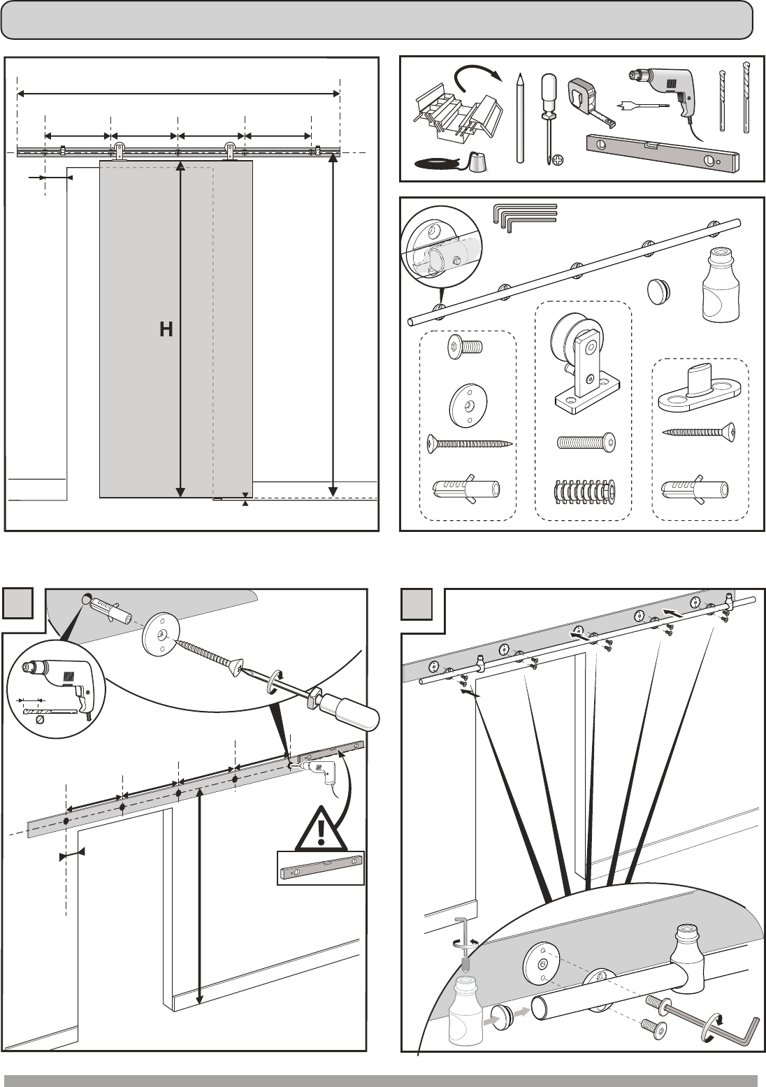 Do NOT install directly onto a drywall surface. A solid wood header is recommended as shown in instruction box 2.