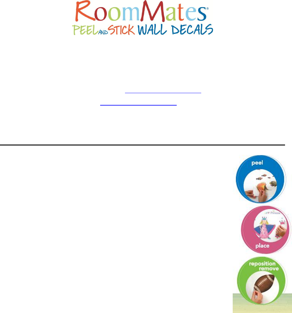 during installation, please visit our website at www.roommatesdecor.com for additional information. If