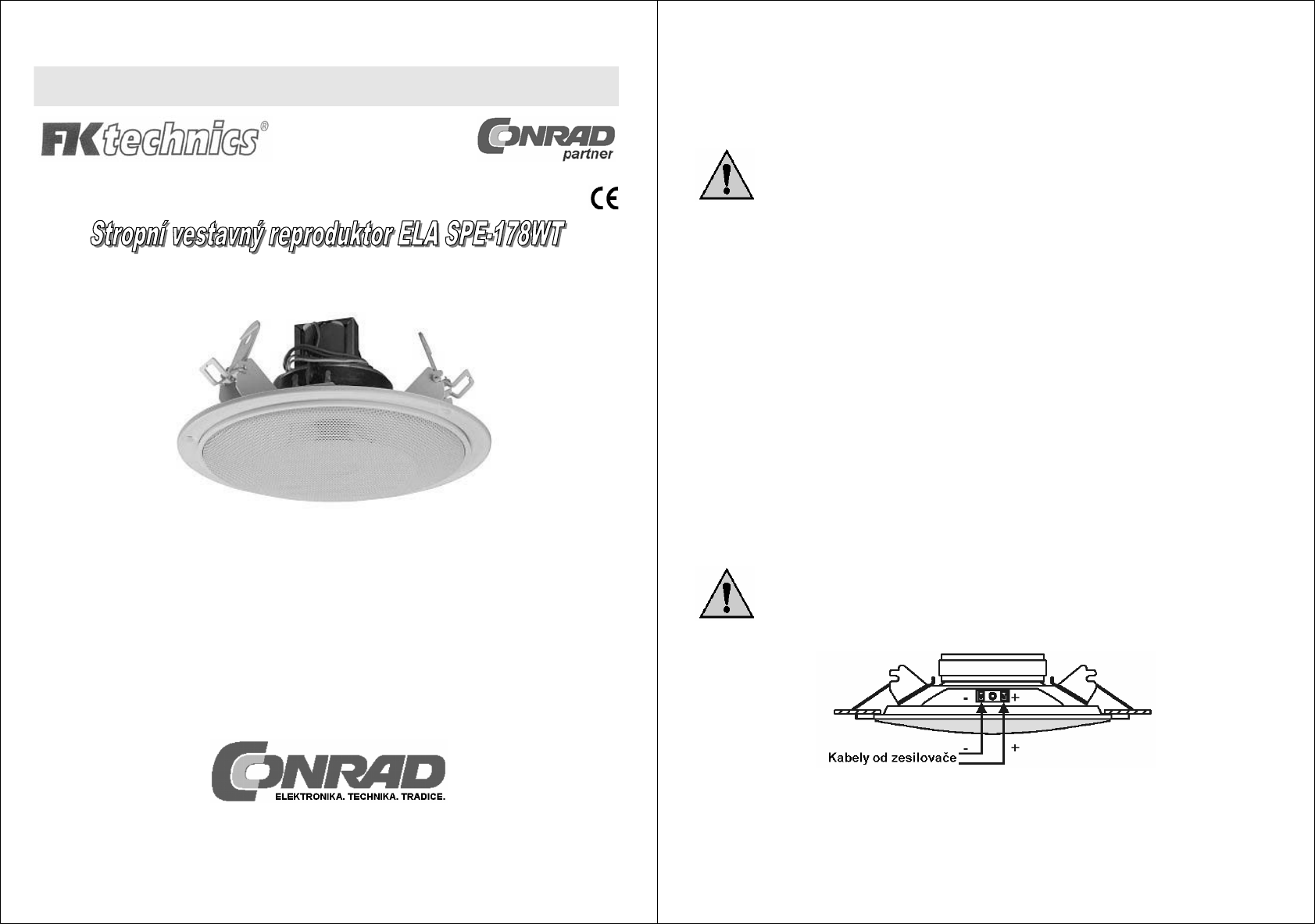• Tento 2-pásmový reproduktor můžete připojit k zesilovačům ELA 100V (obj. č. 33 55 33 nebo 33 55 68) či