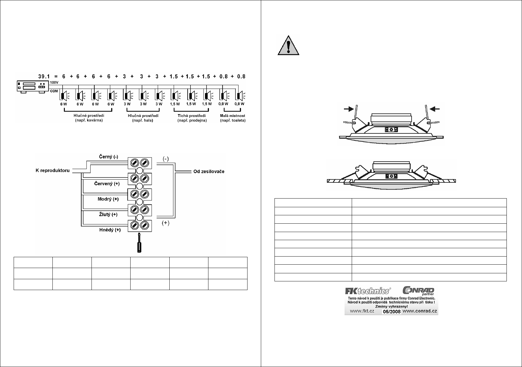 Reproduktor musí být ve stropě pevně zajištěn, aby nemohl vypadnout a způsobit úraz