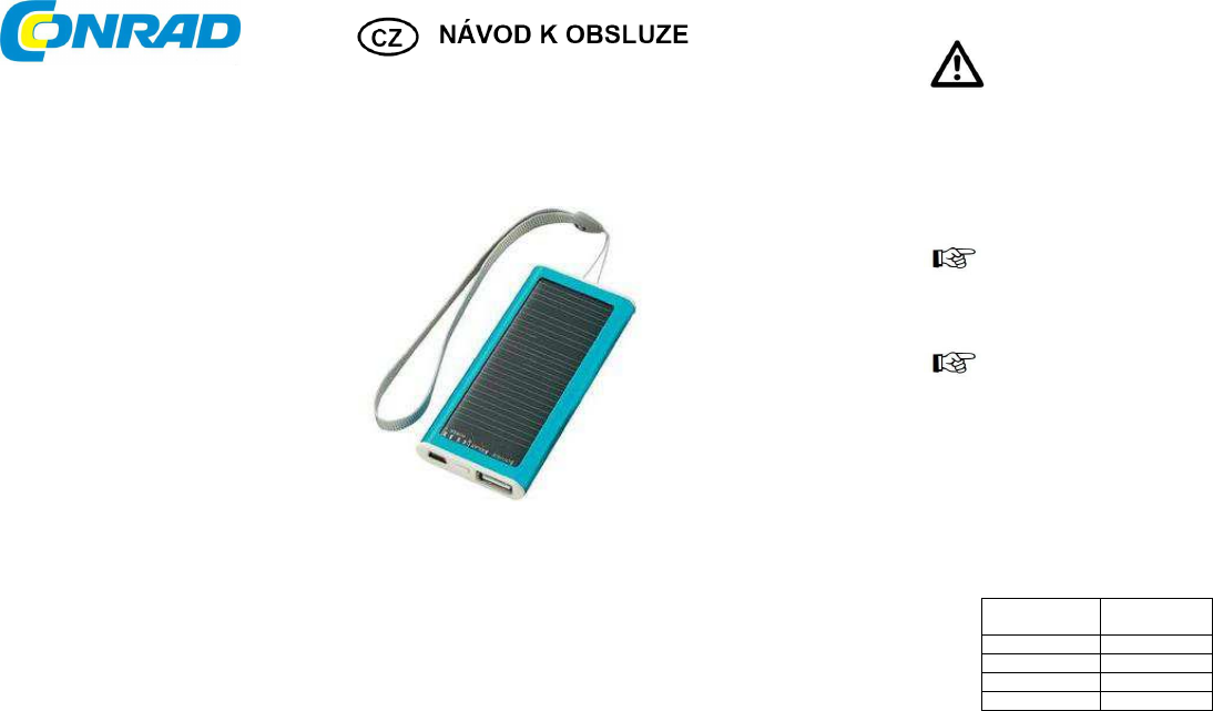 Tato solární nabíječka je určená pro dočasné dobíjení mobilních telefonů nebo multimediálních