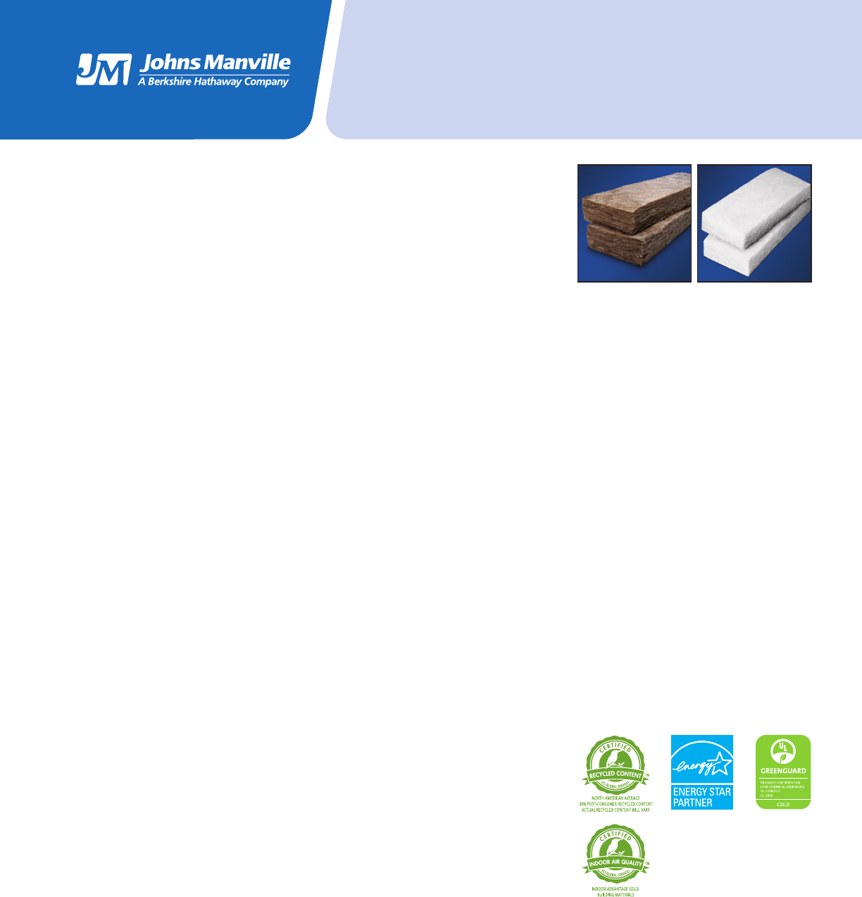 applications. JM insulation is available unfaced or with a variety of facings,