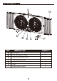 A D PIEZA G B E C DESCRIPCIÓN G F CANTIDAD Cuerpo del ventilador 1 Control de velocidad del ventilador izquierda 1 Control de velocidad del ventilador derecha 1 Control del termostato 1 Palanca de control de entrada/salida/intercambio derecha e izquierda 1 Patas 2 Paneles extensibles 2 11
