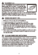 1. Do not operate any fan with a damaged cord or plug. Discard fan or return to an authorized service facility for examination and/or repair. 2. Do not run cord under carpeting. Do not cover with throw rugs, runners, or similar coverings. Do not route cord under furniture or appliances. Arrange cord away from traffic area and where it will not be trip over. 3. Never insert fingers, pencils, or any other object through the grille when fan is running. 4.