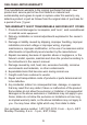 ONE-YEAR LIMITED WARRANTY The manufacturer warrants to the original purchaser that each new product and service part is free from defects in material and workmanship and agrees to repair or replace under this warranty any defective product or part as follows from the original date of purchase for a period of one (1) year. THIS WARRANTY IS NOT TRANSFERABLE AND DOES NOT COVER: 1. Products sold damaged or incomplete, sold “as is”, sold reconditioned or used as rental equipment. 2.