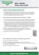 HiFlo™ DI140 Quick Start Guide 4. Resin and Cartridge Replacement 1. Relieve pressure by pressing the red buttons on top. 2. Using supplied housing wrench (part #5), loosen housings by turning clockwise (from right to left); then use your hands to “unscrew” each of the two housings. Lift resin cartridges out of housings. Then follow instructions (a) or (b) below. Be aware that both housings are filled with water. a) Resin Replacement Using Pre-Measured Refill Bags (i.e.