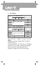 Model UT2000: OPERATING MANUAL 16. Do not operate the Meter under adverse environmental condition including high temperature and especially humid area as the Meter’s function may be ineffective after moisturizing. 17. To avoid damages and dangerous, do not change the circuit on your own. 18. Periodically wipe the cabinet with a damp cloth and mid detergent. Do not use abrasives or solvents. 19. Dispose the used battery proper. 20. The Meter is suitable for indoor use only.