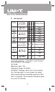 Model UT2000: OPERATING MANUAL 7. Temperature ACCURACY RANGE RESOLUTION 2007 o o o o -40 C~+400 C 400 C~1000 C o (0.75%of rdg+3digits) 1C (1.5%of rdg+15digits) 1C o Temperature sensor: International standard K type (NiCr - NiSi) probe. 8. Frequency RANGE ACCURACY 2006 2kHz 20kHz RANGE (1.5%of rdg+5digits) 1Hz 10Hz ACCURACY 2003 20kHz RESOLUTION 2004 (1.5%of rdg+5digits) RESOLUTION 1Hz Input sensitivity: 100mV rms. Overload protection: 250 DC or AC rms.