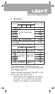 Model UT2000: OPERATING MANUAL FEATURES l l l l l l l l l l DC basic accuracy: (31/2) 0.5%; (4 1/2) 0.05%. Max. display:1999 (3 1/2 digit) ; 19999 (4 1/2 digit). Reading display frequency: 2-3 times per second. Automatic indication of polarity, decimal place and signs. Automatic indication of "1" for over-range." " shows when the battery is insufficient. Auto-zeroing for capacitance test. Automatic circuitry protection and buzzer sounds for over-range and mis-operation.