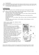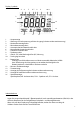 SELECT Alternative Funktion anwählen Power Kurz drücken: Gerät einschalten Länger drücken: Gerät ausschalten Save Kurz drücken: aktueller Messwert wird gespeichert Länger drücken: Messwerte werden laufend gespeichert. Nochmals kurz drücken: Messwertspeicherung wird beendet. Es gibt 99 Speicherplätze, wenn der Speicher voll ist, erscheint „Full" im Display. Mit CLR ist der Speicher löschbar.