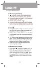 Model UT57: OPERATING MANUAL C-7 Measuring Frequency 1) Connect red test lead to “Hz” jack and black test lead to “COM” jack. 2) Set the rotary switch to “kHz” 3) Connect the test leads across with the object being measured. LCD appears the frequency value. Caution When measuring above 30Vrms, accuracy could not be guaranteed and take extra care of safety as voltage brings dangerous electricity .