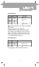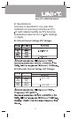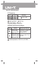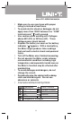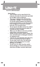Model UT57: OPERATING MANUAL C. Making Measurements Caution (1) If there is no display or “ ” is shown on the LCD when the Meter is switched on, replace the battery ASAP. (2) Never exceed the maximum input voltage or current limits shown besides the input jacks “ ” , otherwise the Meter's internal circuit will be damaged and this is dangerous to life. (3) Become familiar with all buttons,and Turn the rotary switch to proper range before operating.