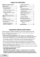TABLE OF CONTENTS What’s in the manual? Getting Started ............................ 3 Installing Your Phone ................... 3 Charge the Battery.......................3 Connect the Telephone Cord.......3 Test the Connection.....................3 Changing from Tone to Pulse Dialing....................................3 Getting to Know Your Phone ....... 4 Base ............................................. 4 Handset . ...................................... 4 Reading the Display ....................