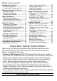 What's in the manual? Installing Your Phone....................... 1 Charge the Battery.......................... 1 Connect the Telephone Cord......... 2 Getting to Know Your Phone.......... 3 Parts of the Base............................. 3 Parts of the Handset........................ 5 Reading the Displays ..................... 6 Using the Menus............................... 7 Using the Base Menu...................... 7 Using the Handset Menus.............. 8 Entering Text on Your Phone.........